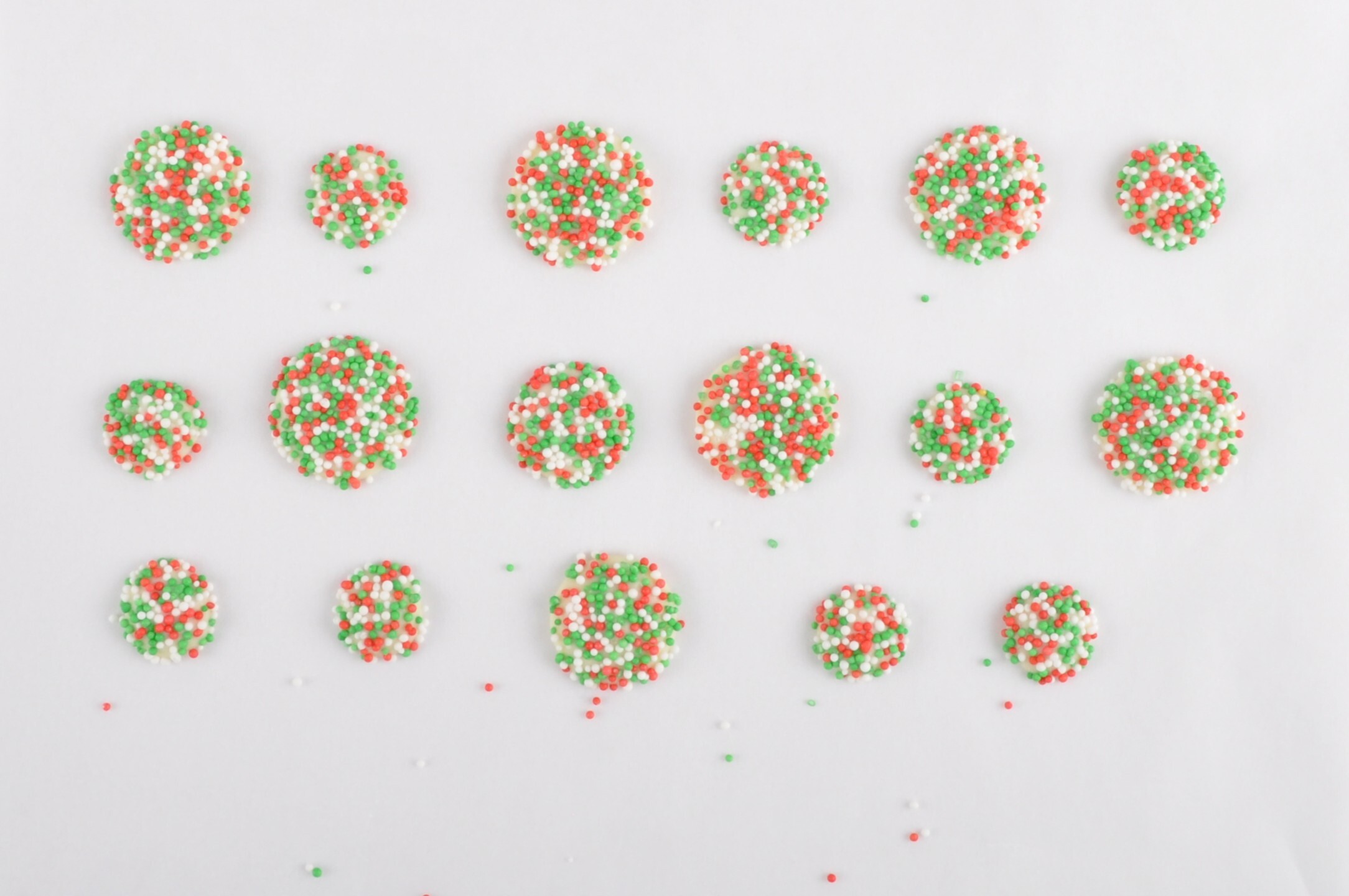 By pairing the traditional colours red, green and white non pareils with our brand new gold nonpareil sprinkle, you can create Christmas chocolate freckles that feel both timeless and a little bit luxe.